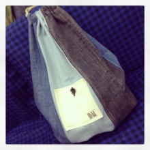 一点目はこちら、14.5ハイオンスデニムを使用したデニムクラッチです。