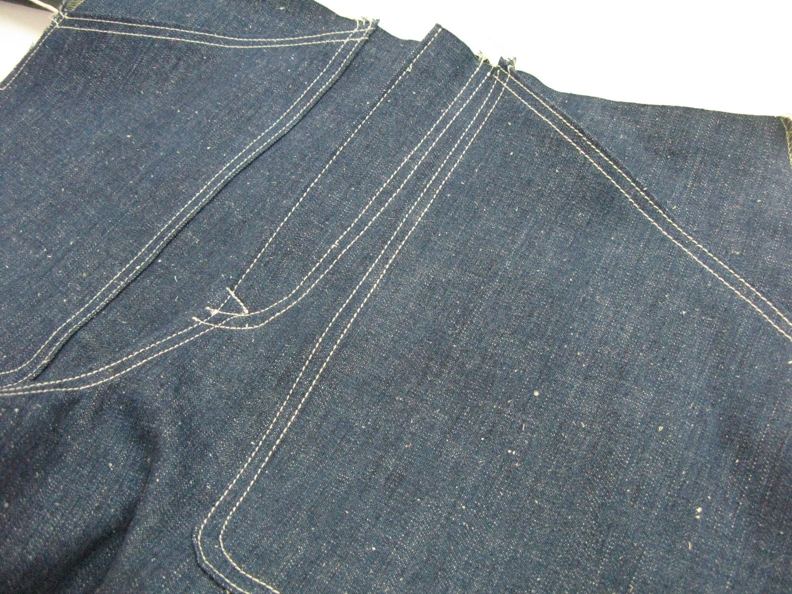 フロントポケットは後付け、昔のワークパンツの風合いをだして欲しいとのこと