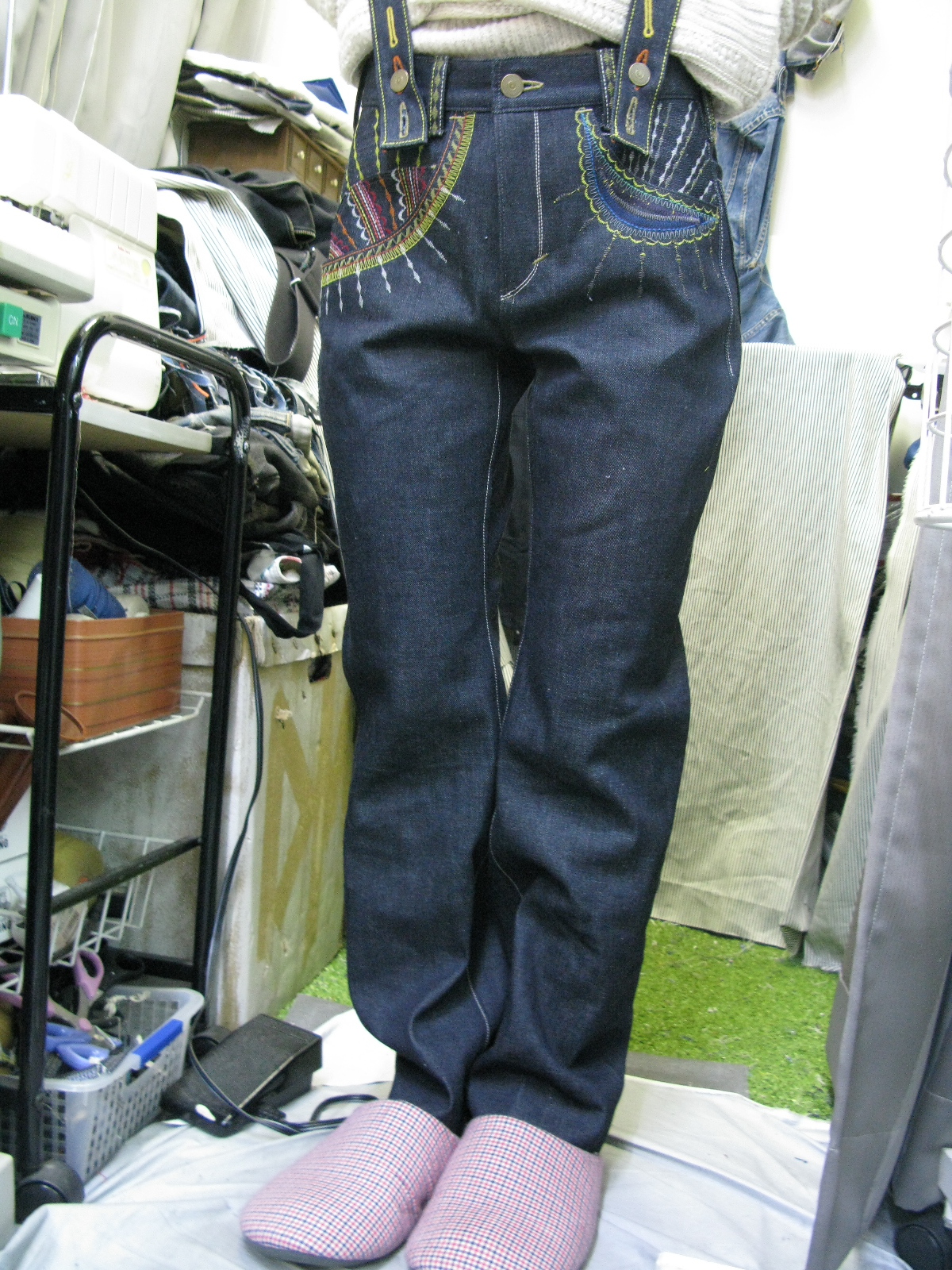デニムマッドネス、まったく絵が描けないので、下書きは一切なし、今回は縫い直しもなしでチョー感覚だけに頼って臨みましたが、お客様が喜んでいただけたご様子でほっとしました