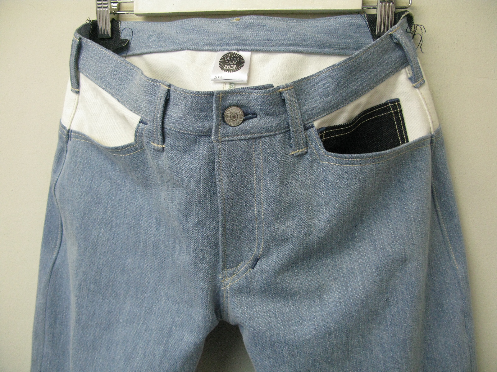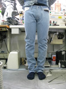 今回はブリーチアウトデニムでさわやかなストレートジーンズを製作させていただきました