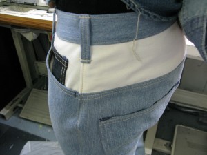 前パンツのポケット布とヨークを繋がるようにデザインされています、