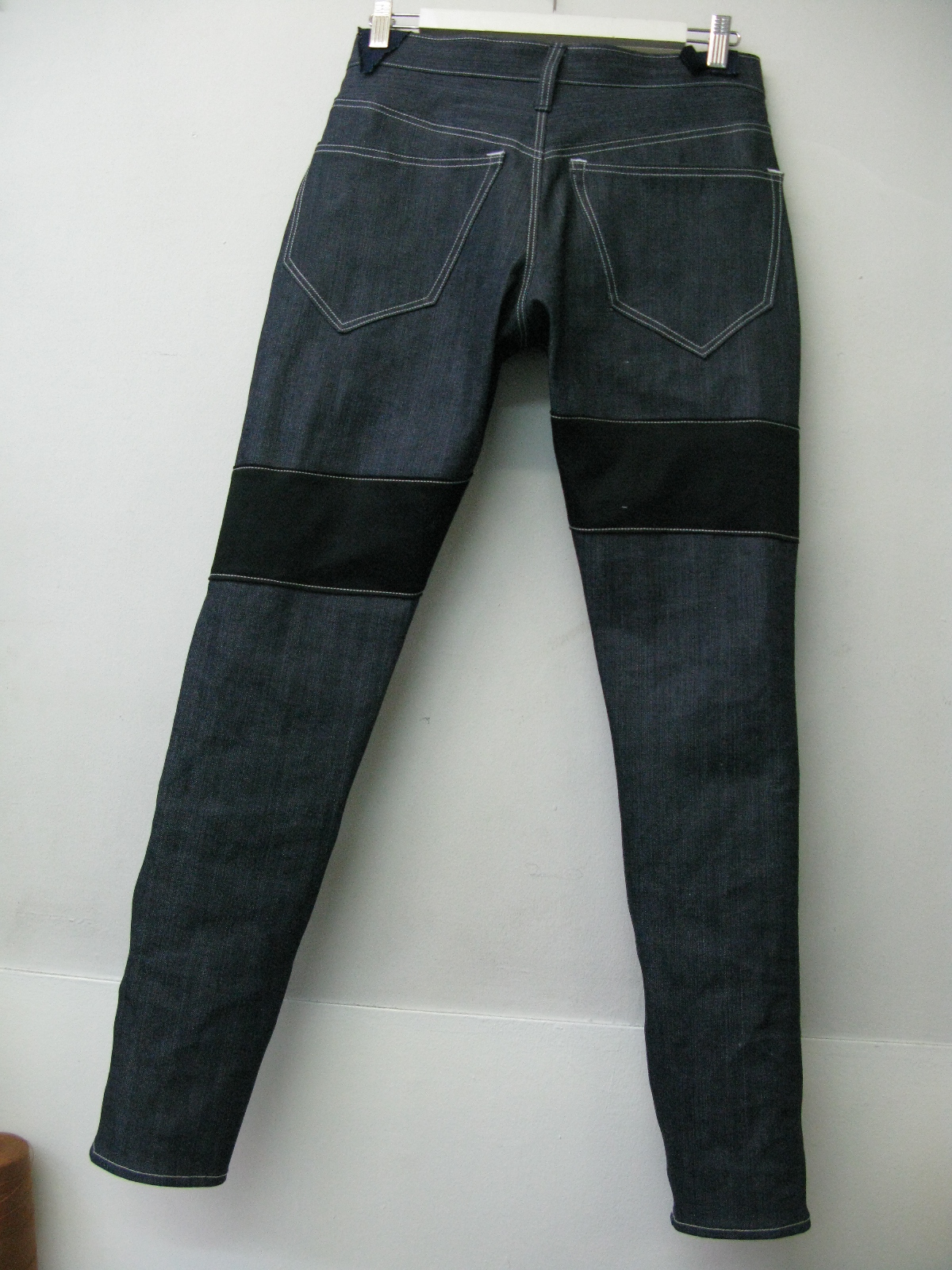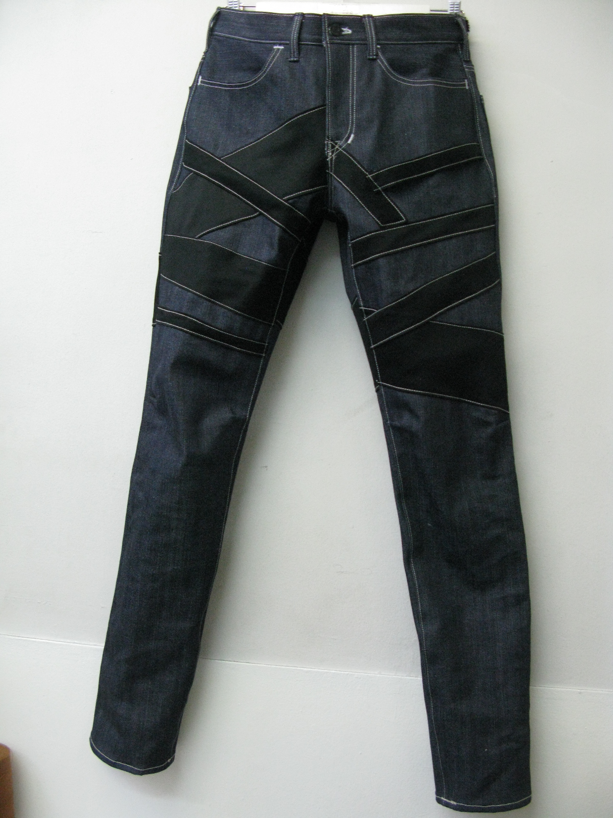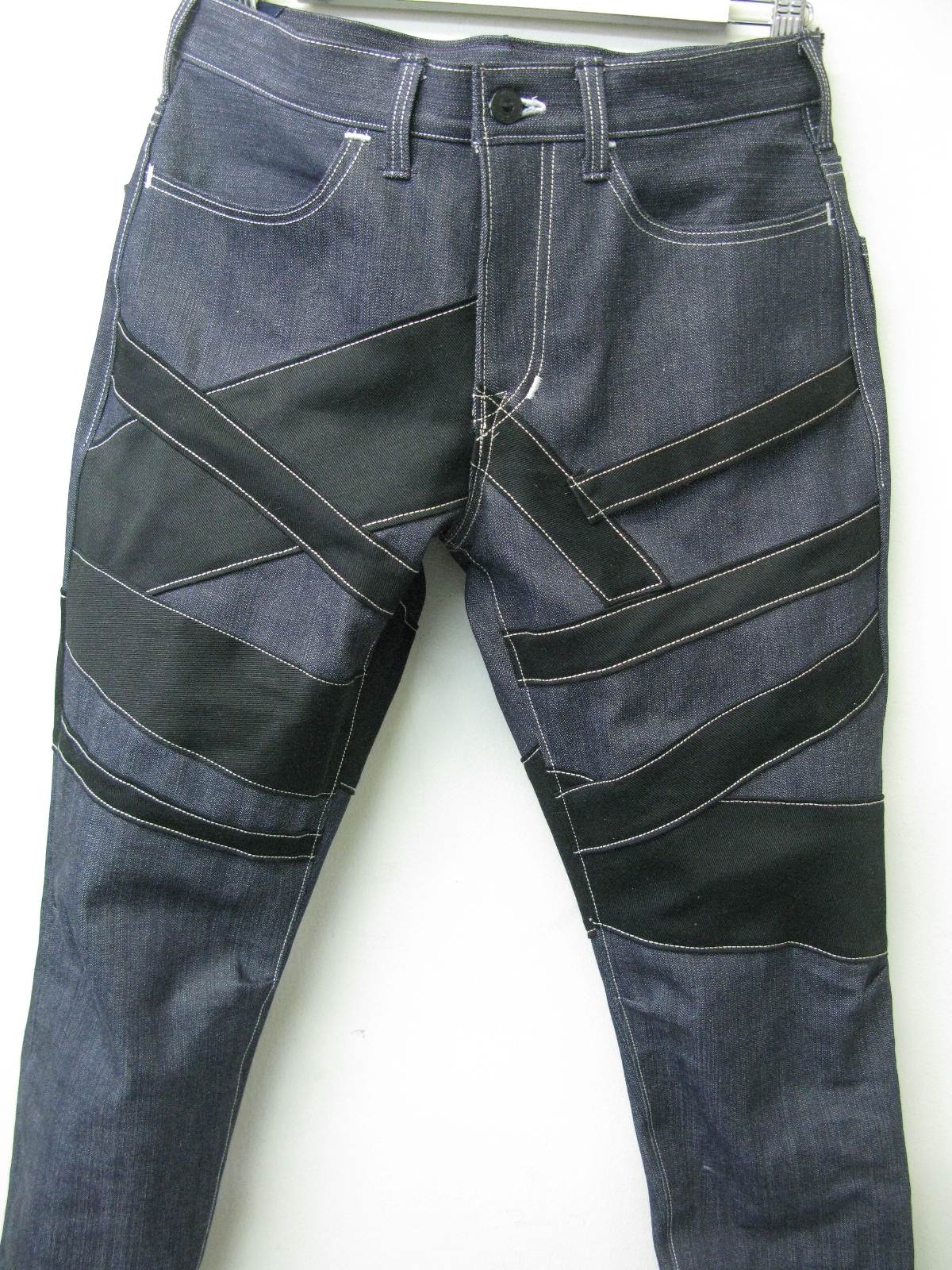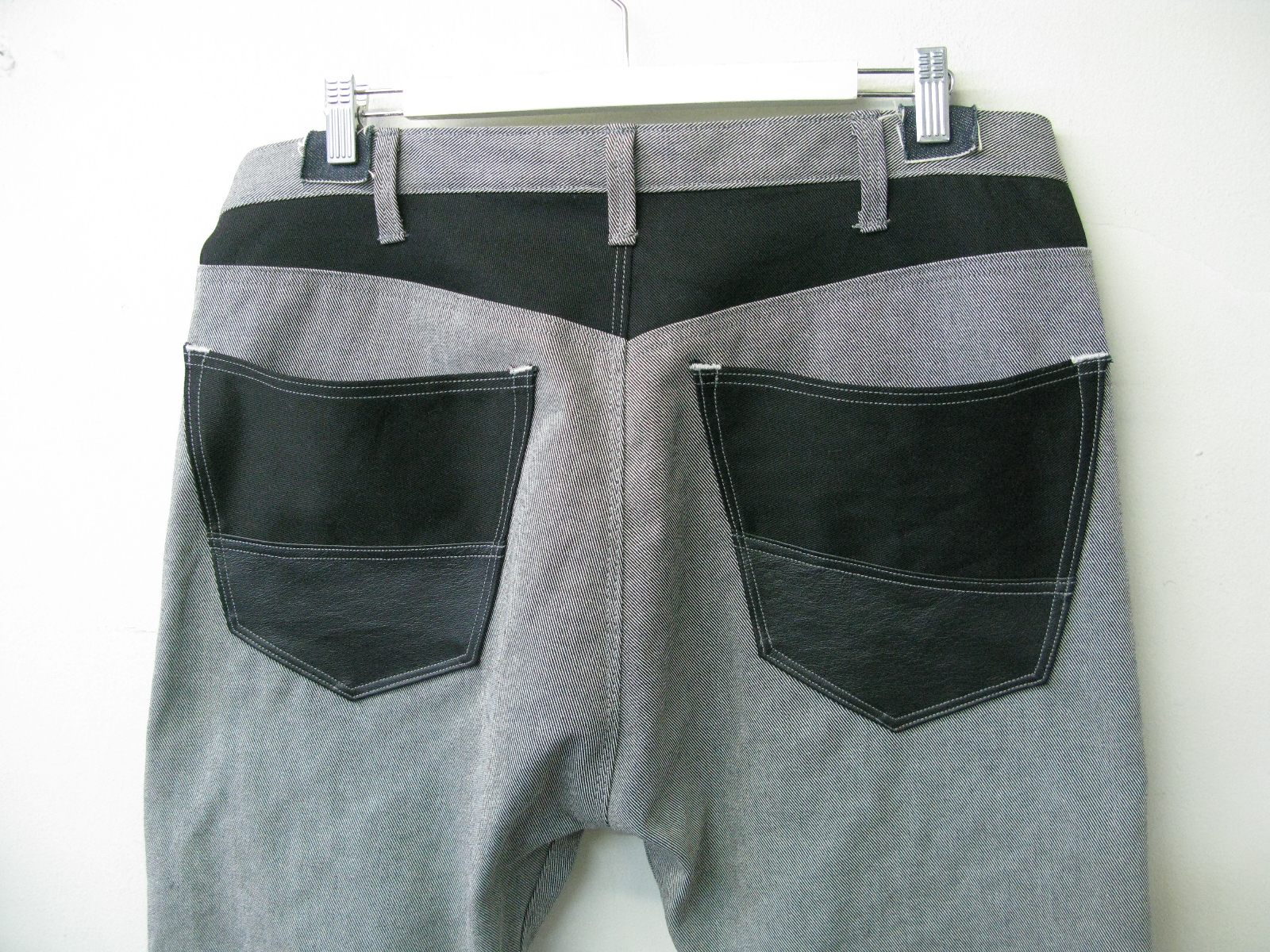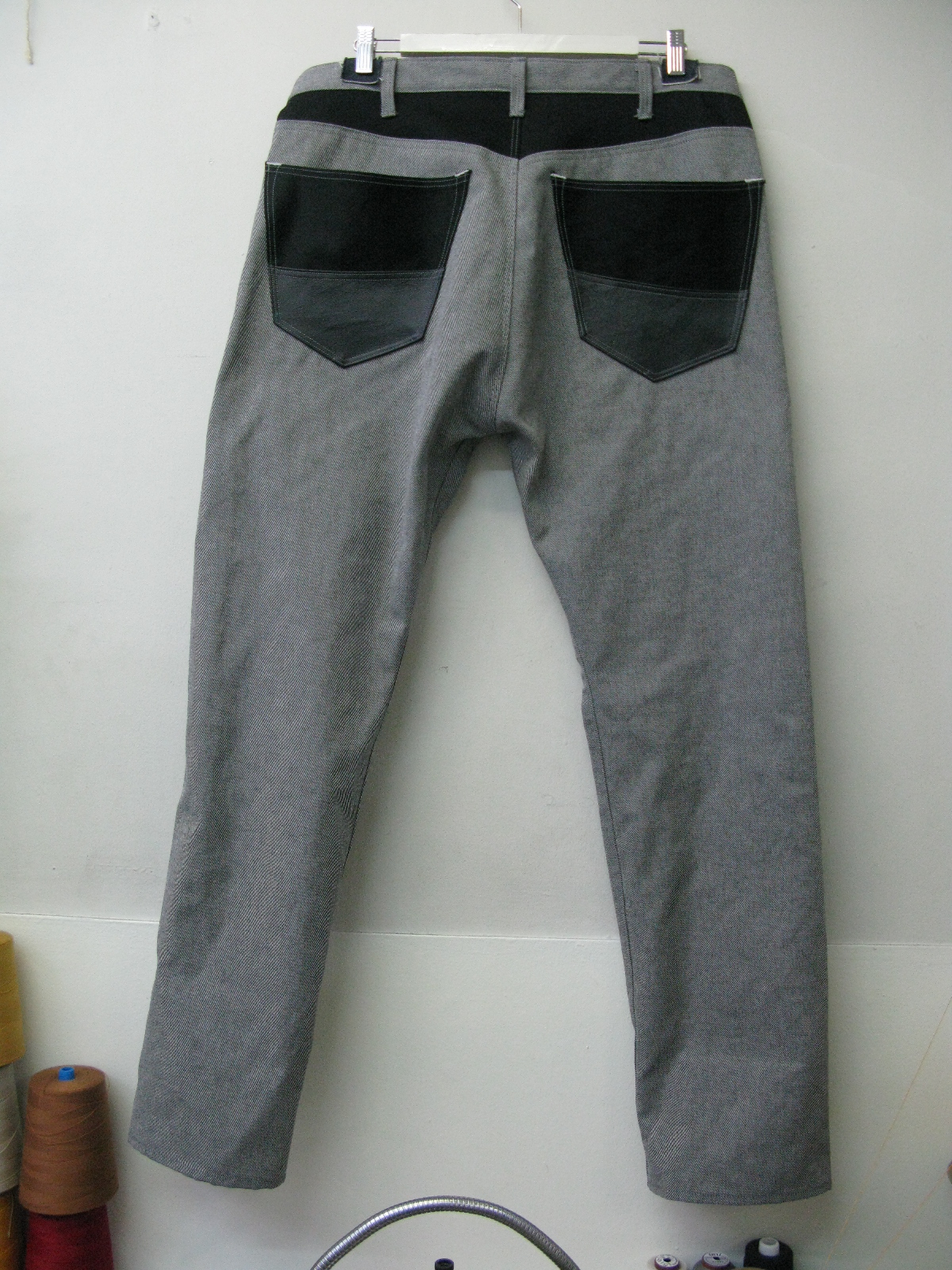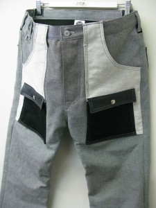 ストレッチのBLACKカツラギをランダムに縫い合わせアクセントに☆よく見ると1本だけハンマーフックになってます、おわかりいただけますでしょうか?左前パンツの一番上ですー