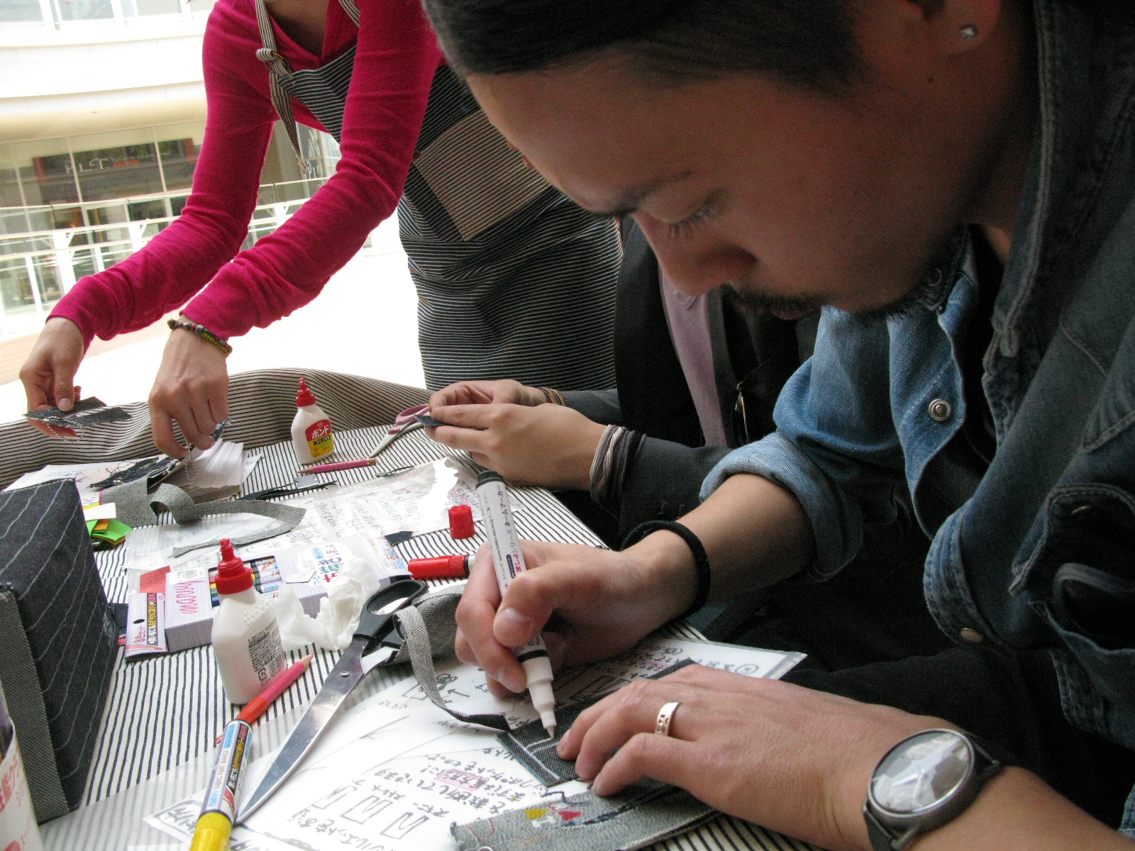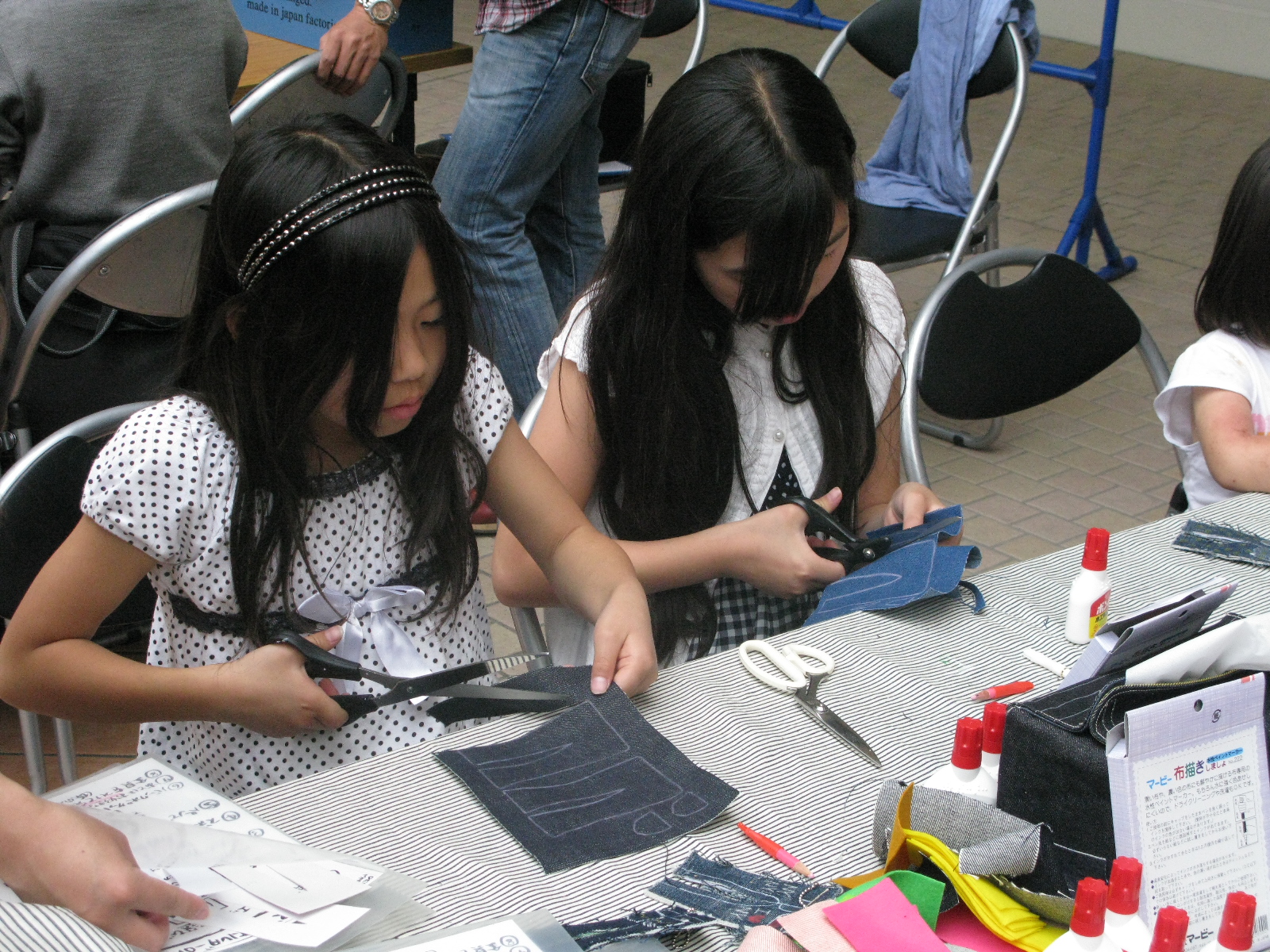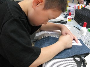最後はわたくし、デニムマッドネスはジーンズをリサイクルし、デニムキーホルダーを製作していただきます!!!