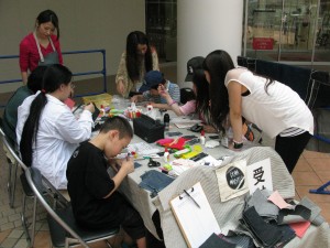 まゆみちゃんブースでTシャツにペイント、ここも大繁盛!