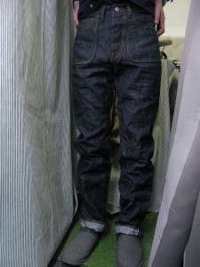 この生地はストレッチデニムなのですが、なんと裏が微妙に起毛された大変珍しい生地。冬に素肌で穿いても寒くないそんな冬使用デニムです!