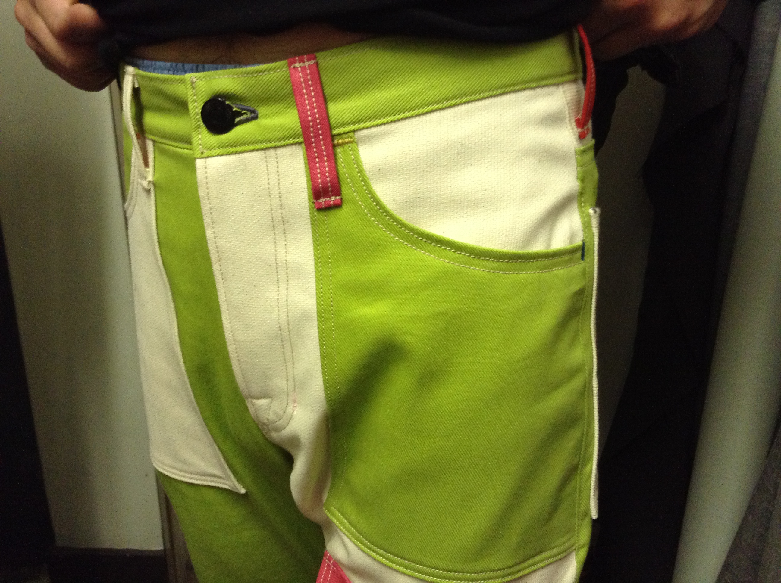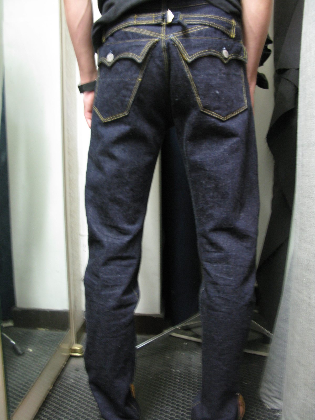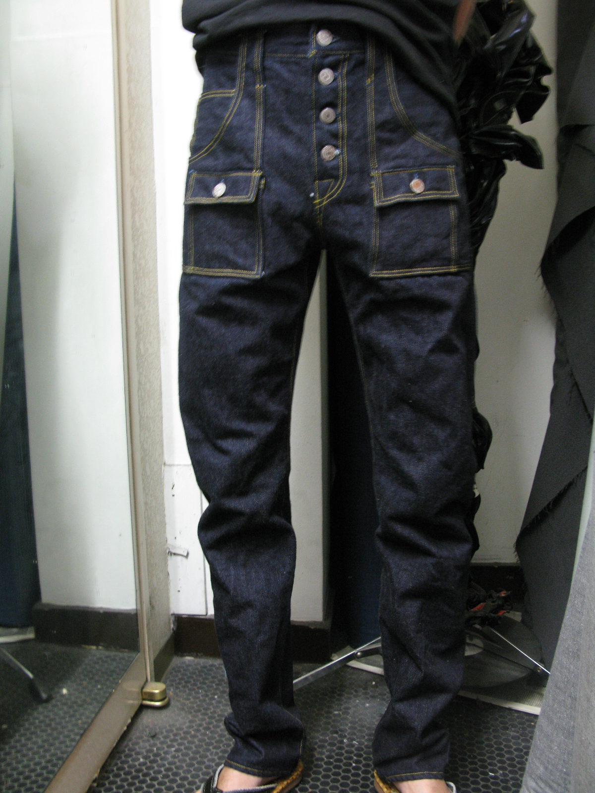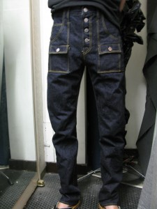 今回は変形カーゴとでも言いましょうか、裾のあたりに大きいポケットが後ろパンツにまで及ぶというもの。