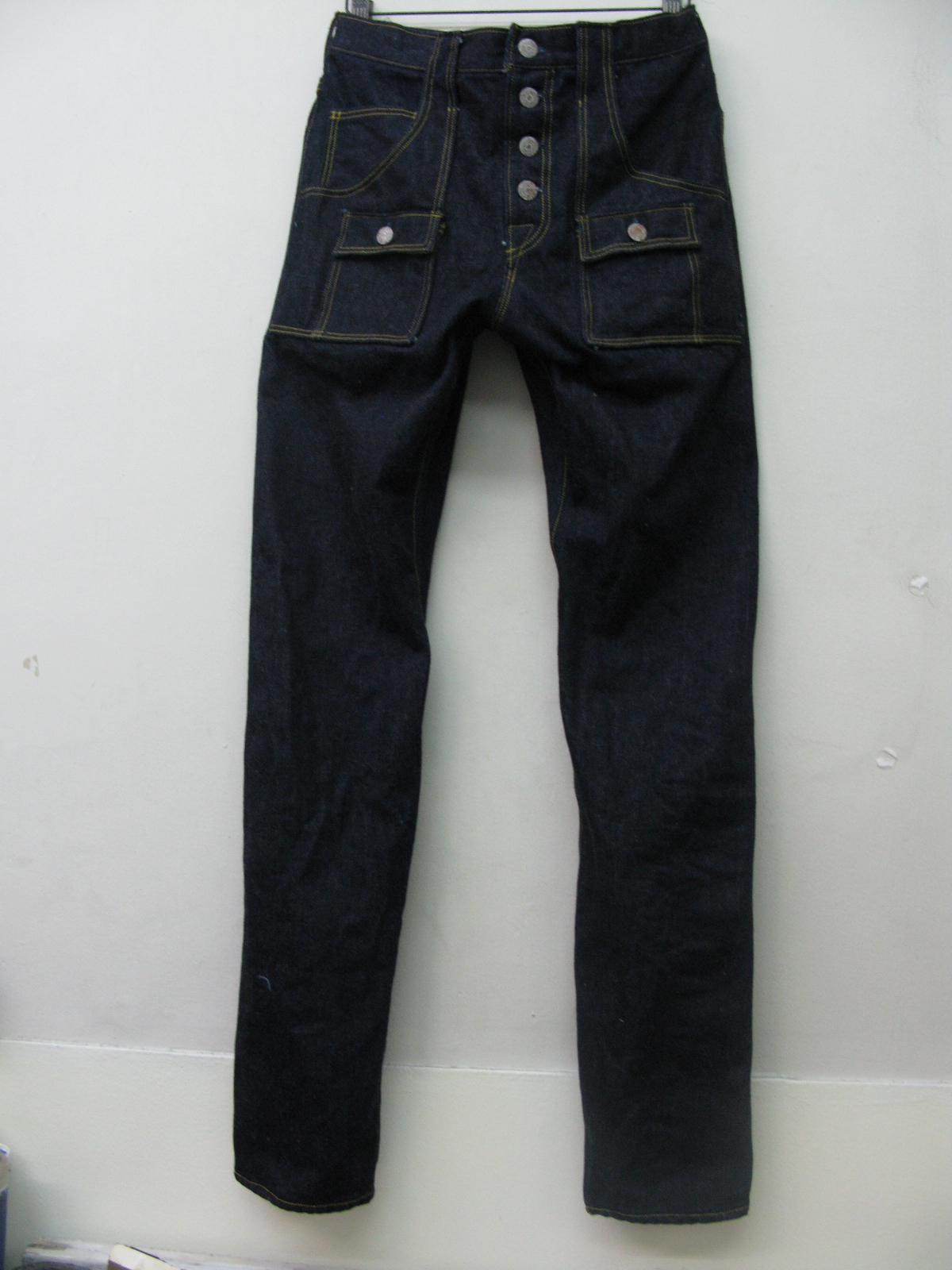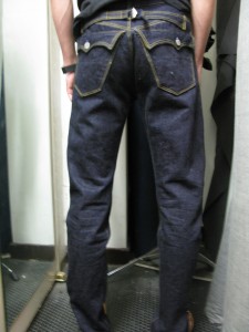 使用生地はノンサンフォの中肉厚セルビッチデニム。いい色落ちしませえー!!!