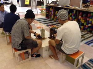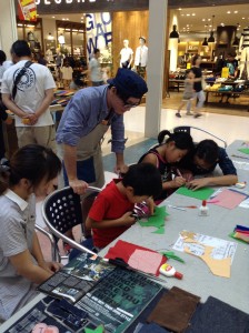 内容は、ハギレデニムでキーホルダーを作ろうという内容。関西では何回かさせていただいているのですが、愛知ではもちろんはじめて。受けるのかどうなのか少し不安でしたが、さすが世界中で愛されるジーンズ、みなさん『あ、ジーパンや!』と小さいお子様からナイスミドルまでお作りになられました。本当にありがとうございました。